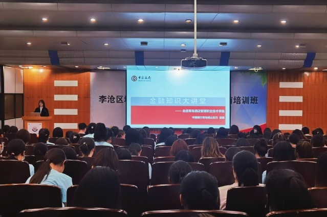 中國銀行青島嶗山支行相關(guān)負(fù)責(zé)人、青島酒店學(xué)院師生代表400余人參加講座。