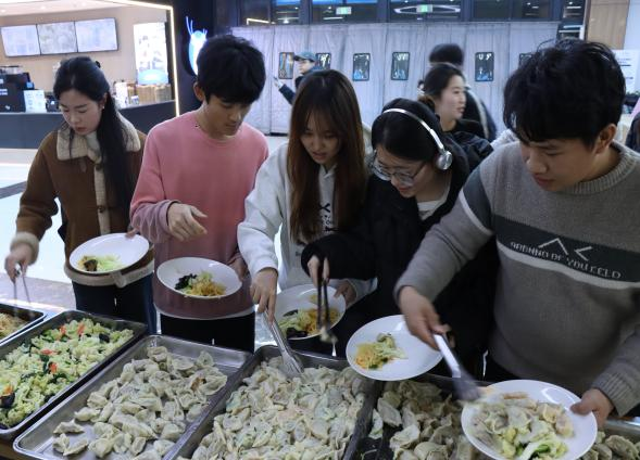 學(xué)校還為學(xué)生們舉辦了一場(chǎng)溫馨且富有意義的冬至活動(dòng),讓魯醫(yī)學(xué)子在冬日里感受到了濃濃的節(jié)日氛圍與校園溫情。同學(xué)們熱情高漲,紛紛大顯身手,不一會(huì)兒一盤盤飽含著濃濃心意的餃子便擺滿了桌面。與此同時(shí),學(xué)校食堂被精心裝扮一番,五彩的氣球、喜慶的彩帶,瞬間將寒冷的冬日裝點(diǎn)得暖意融融。一場(chǎng)冬至里的文藝表演呈現(xiàn)在眼前,來自各學(xué)院的表演者們,通過歌曲、舞蹈、相聲等精彩的節(jié)目表演將活動(dòng)氣氛推向了高潮。