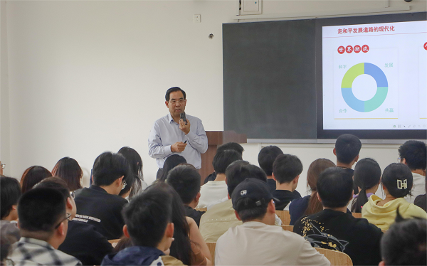 呂傳毅通過(guò)鮮活的事例、清晰的圖表,用通俗的語(yǔ)言深入淺出地從“接續(xù)奮斗,追求偉大夢(mèng)想”“立足國(guó)情,開(kāi)辟全新道路”“凝心聚力,推進(jìn)復(fù)興偉業(yè)”3個(gè)方面進(jìn)行講授。他結(jié)合國(guó)家、地方的發(fā)展實(shí)際和自身經(jīng)歷對(duì)中國(guó)式現(xiàn)代化進(jìn)行詳細(xì)講解,并將自己創(chuàng)作的歌曲和詩(shī)歌有機(jī)融入課程教學(xué)之中。