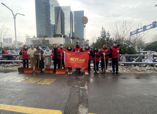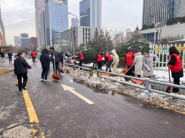 活動中,黨員志愿者們手持工具、不畏嚴(yán)寒,分工明確、配合默契,在國奧城園區(qū)開展除冰掃雪,為園區(qū)內(nèi)群眾的安全出行和交通暢通保駕護航。在大家的共同奮戰(zhàn)下,園區(qū)積雪積冰得到有效清除。