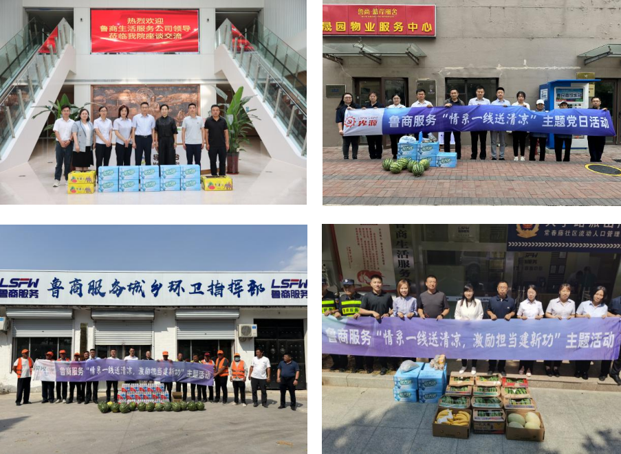 為持續(xù)推進(jìn)“我為群眾辦實(shí)事”實(shí)踐活動(dòng),確保一線職工身心健康和生產(chǎn)安全,魯商服務(wù)黨委班子成員深入基層一線,為員工送去礦泉水、西瓜等解暑物資,將黨組織和工會(huì)的關(guān)懷送到員工心坎里,并叮囑大家在高溫期間注意防暑降溫,加強(qiáng)自我防護(hù),確保身體健康、工作安全。