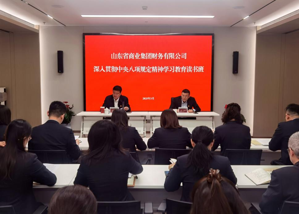 3月31日至4月1日,財務公司舉辦深入貫徹中央八項規定精神學習教育讀書班。魯商集團總經理助理,財務公司黨支部書記、董事長徐峰主持開班式并講話。