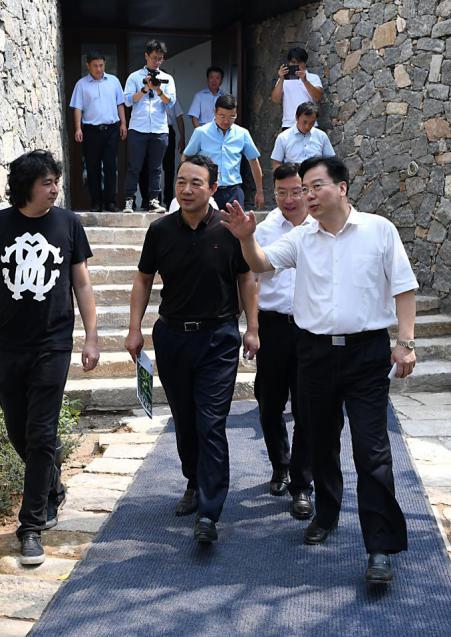魯商集團九女峰鄉(xiāng)村生態(tài)旅游度假區(qū)項目位于泰安市岱岳區(qū)道朗鎮(zhèn),總面積約50平方公里,覆蓋19個行政村,計劃投資50億元。目前,該項目首期高端民宿產(chǎn)品“故鄉(xiāng)的云”已投入試運營,最美魯派民居、游學研學培訓中心、游客集散中心、農(nóng)產(chǎn)品交易中心、農(nóng)副產(chǎn)品加工中心等近期也將陸續(xù)開工。項目建成后,預計每年吸引游客約200萬人次,實現(xiàn)旅游收入6億元,帶動就業(yè)人數(shù)2000余人,將有力促進地方經(jīng)濟發(fā)展。“九女峰項目發(fā)展不到一年時間,很快就邁出去了”,現(xiàn)場觀摩后,張斌對于九女峰鄉(xiāng)村振興項目給予高度肯定。他表示, 項目在產(chǎn)業(yè)開發(fā)、發(fā)揮鄉(xiāng)村優(yōu)勢、特色民宿錯位發(fā)展、推動農(nóng)村產(chǎn)業(yè)融合等方面做出有益嘗試,值得推廣借鑒。