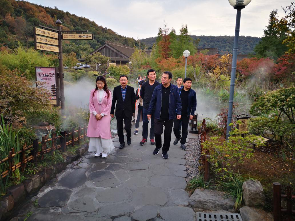 高洪雷一行在無錫拈花灣文化旅游投資發展有限公司總經理陳琪和無錫市賽博文旅公司董事長、魯商泰山人家總策劃徐忠明的陪同下,現場參觀了拈花灣小鎮,詳細了解項目創意策劃及運營管理等情況。