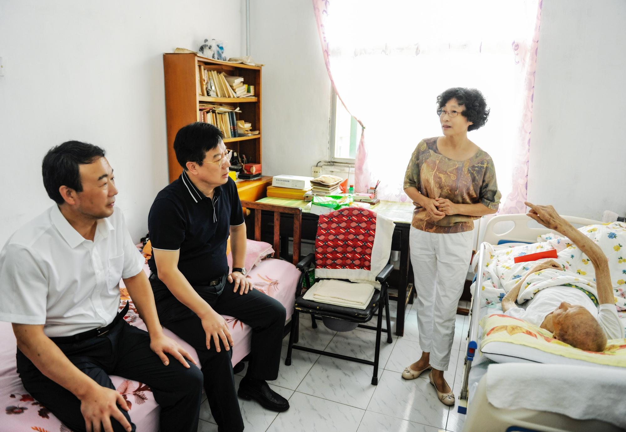 呂泌老人今年已有91歲高齡,患病癱瘓在床,生活無法自理。在呂泌家中,張斌向其大女兒呂元美關切地詢問老人的身體狀況及護理情況。他說,家屬照顧老人很辛苦,有什么困難,一定要跟組織上說。同時,張斌還向老人家屬介紹了省國資國企和魯商集團的發(fā)展情況。他說,因為疫情,魯商集團今年承擔了很大的壓力,一方面要穩(wěn)市場保障物資供應,另一方面還要為諸多商鋪租戶減免房租。盡管如此,今年上半年魯商集團仍舊保持了良好的發(fā)展態(tài)勢。