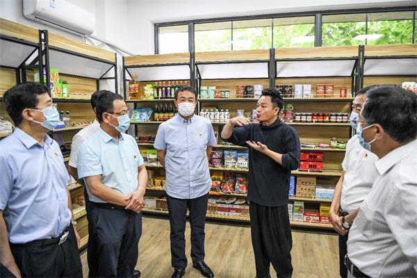 著名主持人、山6創意園入駐企業山東禮達天下優農控股集團董事長武文向中心組成員介紹產品熱銷情況