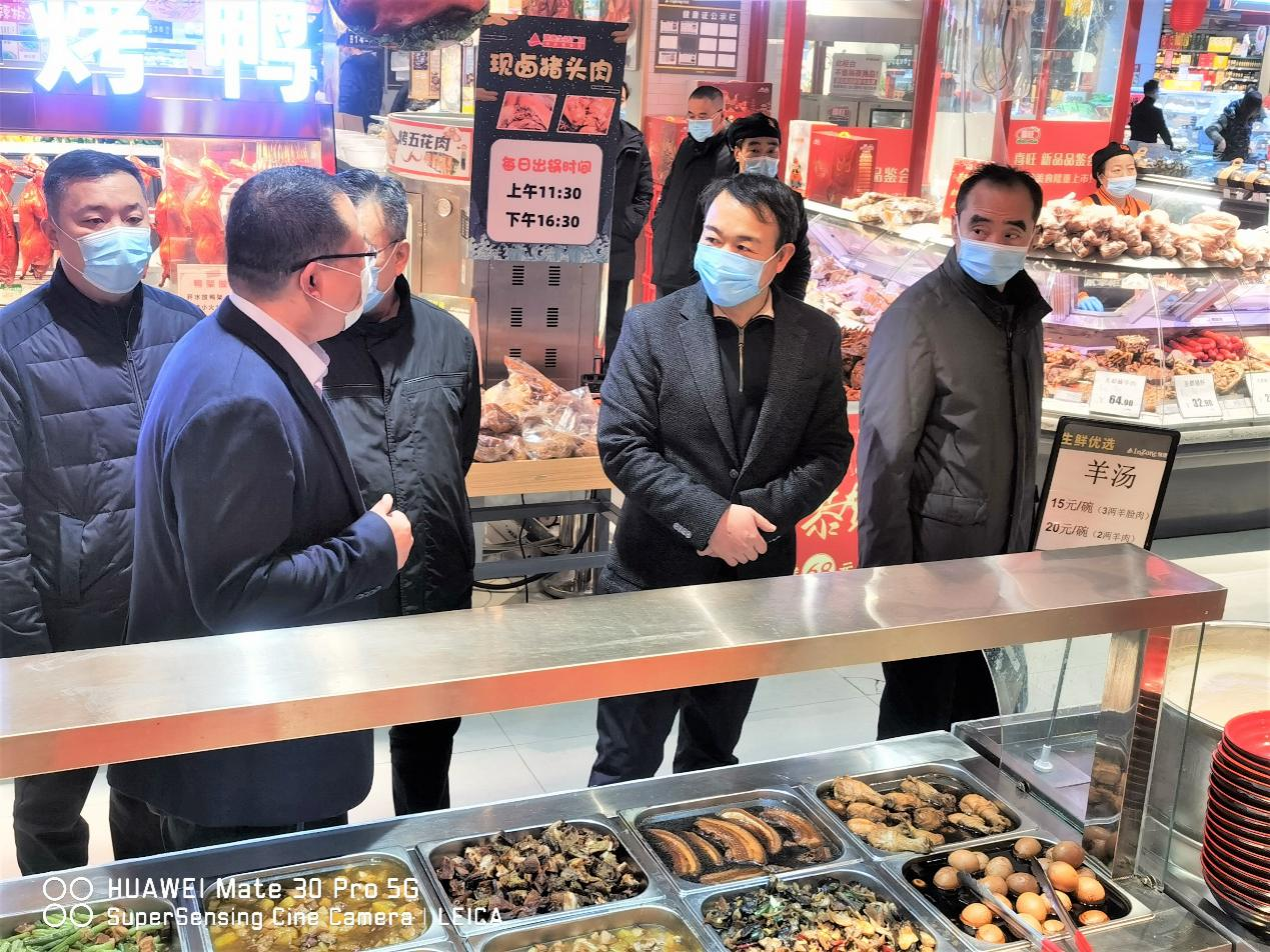 高洪雷詳細了解門店在節日市場保供、消費促進、疫情防控等方面的工作情況,對門店集中優勢項目與社區周邊居民共享、提供多種便民服務、打造“鄰里銀座”新形象的經營模式表示充分肯定。他強調,門店要充分發揮自身資源優勢,與民生需求相融合,為廣大顧客帶來更多實惠商品和便捷服務;要嚴把節日市場商品“檢測關”與“質量關”,在全力做好物資供應的同時,確保經營管理井然有序、商品儲備豐滿充足,讓顧客買得放心、用得舒心、吃得安心;尤其是在客流增大的假期,要時刻緊繃疫情防控這根弦,持續強化安全檢查力度,嚴格落實“亮碼、測溫、戴口罩”等進店防控措施,確保廣大顧客度過一個平安、歡樂、祥和的新春佳節。