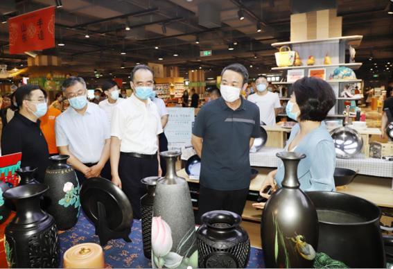 高洪雷實地調研了解了門店調改升級情況,對工作給予了充分肯定。他強調,銀座集團要持續創新運作模式,以市集新業態為起點,以“山東手造”進商超為契機,切實發揮樣板門店的示范引領作用,將傳統文脈、時尚創意與當代消費有機融合,提升手造品牌傳播價值的同時,盤活銀座優勢、做強銀座特色,多舉措激活新消費市場,打造消費升級新高地,以文賦能、創新體驗、轉型發展、帶動提升。