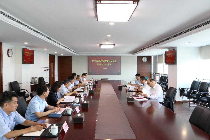 6月24日,濟南市商務局黨組書記、局長孫戰宇一行到魯商集團調研駐濟省屬企業座談會召開以來有關工作進展情況,集團黨委副書記、總經理郭訓成,副總經理趙西亮、張建軍,濟南市商務局黨組成員、副局長滕志超出席活動。