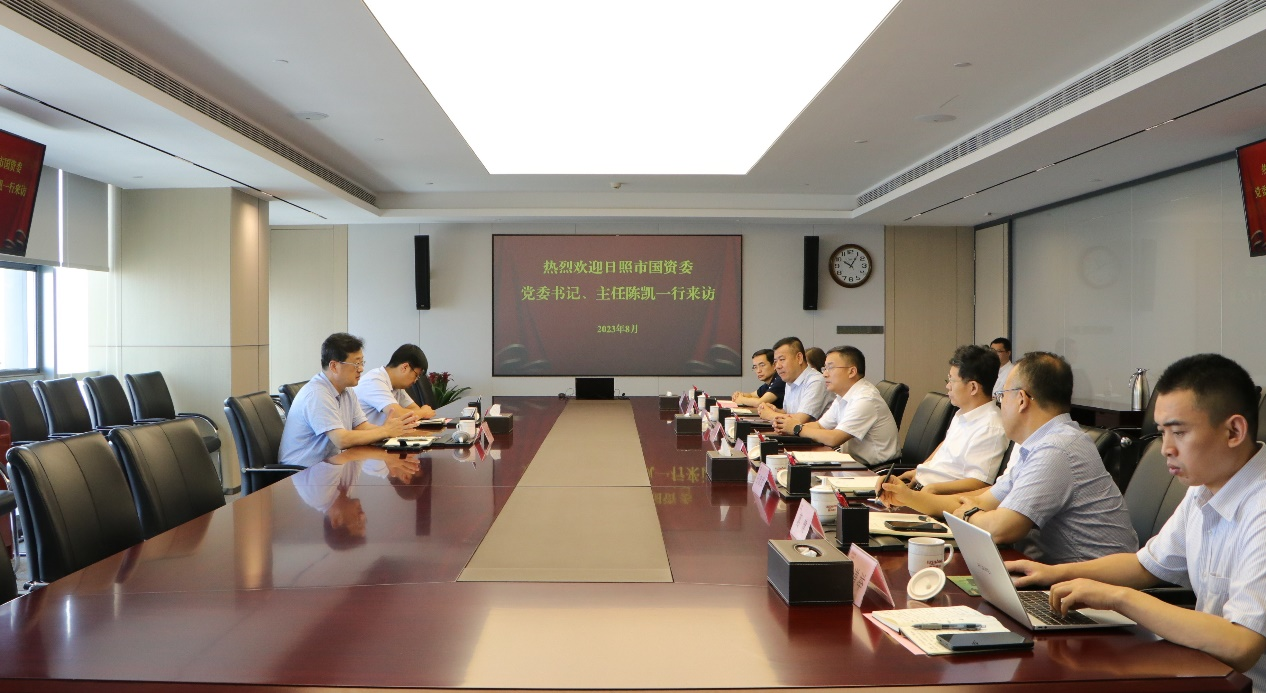 8月9日,日照市國資委黨委書記、主任陳凱到訪魯商集團(tuán),集團(tuán)黨委副書記、董事、副總經(jīng)理朱華建熱情接待并舉行座談。