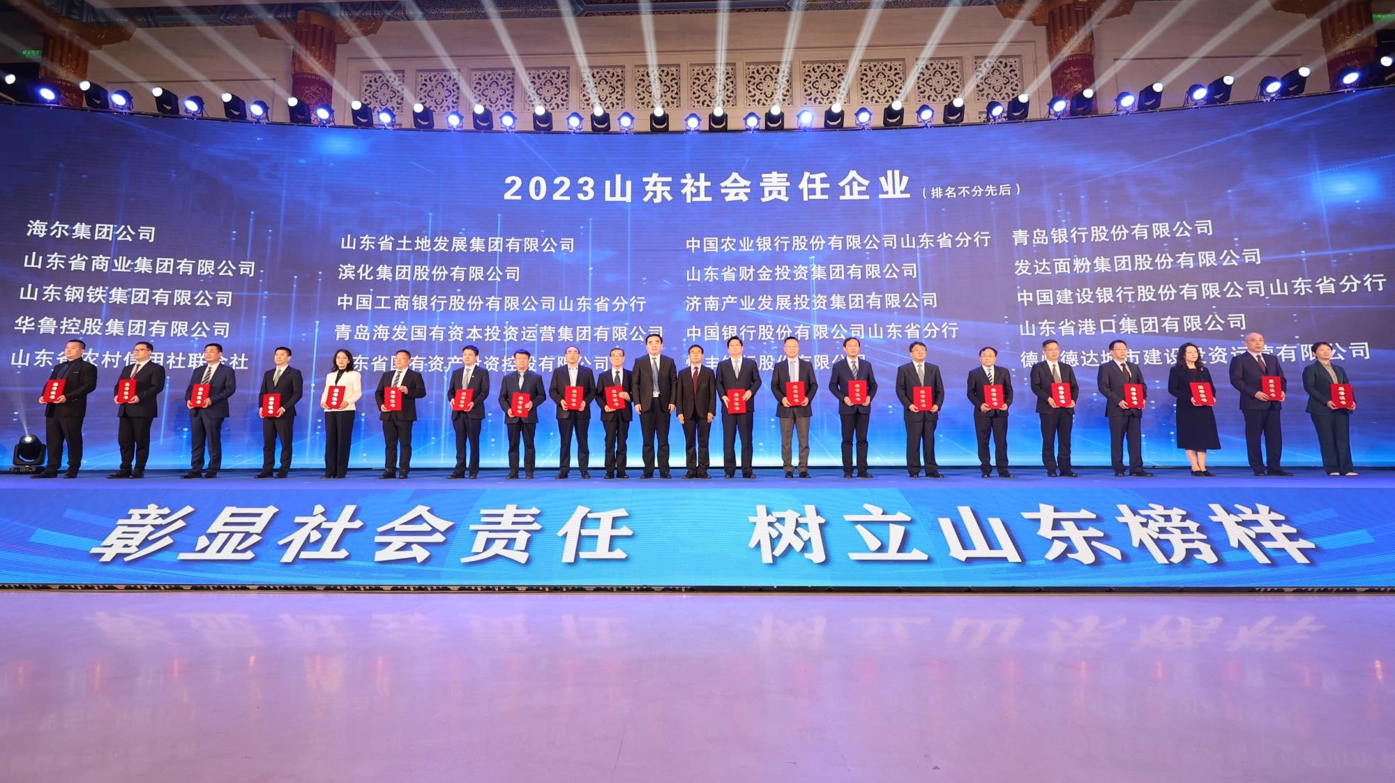4月2日,由大眾報業集團(大眾日報社)、省工商聯、省國資委、省市監局、省委金融辦聯合主辦的“2023山東社會責任企業(企業家)”發布暨“2024山東社會責任企業(企業家)”推選活動啟動儀式在濟南舉行,魯商集團榮膺“2023山東社會責任企業”,集團黨委副書記、董事張洪東代表集團上臺領獎。