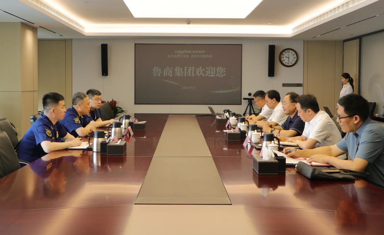 5月24日,魯商集團(tuán)黨委書記、董事長(zhǎng)王緒超會(huì)見到訪的濟(jì)南市消防救援支隊(duì)黨委書記、政治委員任廣治,雙方就強(qiáng)化合作、提升企業(yè)消防安全管理水平進(jìn)行深入交流。