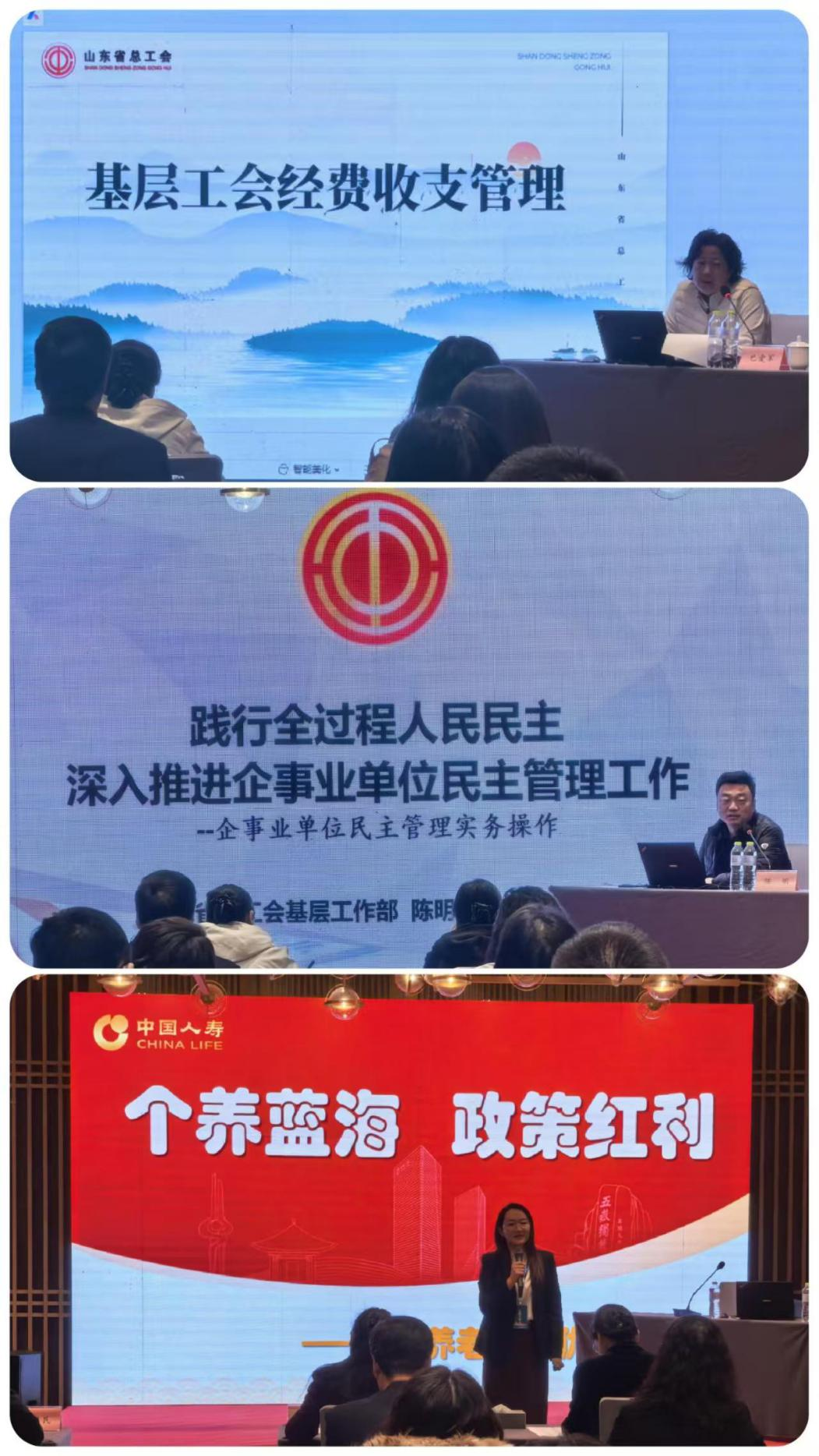 培訓(xùn)班邀請省總工會經(jīng)費審查委員會辦公室主任、一級調(diào)研員巴愛軍講解了工會財務(wù)和經(jīng)審工作實務(wù),省總工會基層工作部負責(zé)人陳明講解了工會基層工作實務(wù),并邀請專家解讀了個人養(yǎng)老金制度等有關(guān)政策,通過案例剖析、互動討論等方式,進一步提升了工會干部的理論水平和業(yè)務(wù)能力。培訓(xùn)還組織了紅色教育基地現(xiàn)場教學(xué),開展了“我為群眾辦實事”、推進美德山東和信用山東“進企業(yè)”主題研討,引導(dǎo)各級工會踐行社會主義核心價值觀,提升服務(wù)職工質(zhì)效。銀座集團、福瑞達、山東城發(fā)、魯商科技、魯商服務(wù)、山東商院、齊魯醫(yī)藥、銀座幼教等8家單位工會圍繞勞模工匠選樹、民主管理、全員創(chuàng)新、服務(wù)職工、黨建引領(lǐng)、就業(yè)促進、素質(zhì)提升等方面作了交流發(fā)言。