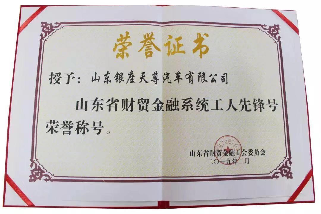 近日,山東銀座天尊汽車有限公司(以下簡稱“銀座天尊”)被山東省財貿(mào)金融工會委員會授予“山東省財貿(mào)金融系統(tǒng)工人先鋒號”稱號,這是山東銀座汽車有限公司實施九大管理體系以來,直屬單位獲得的又一項重要榮譽(yù)。