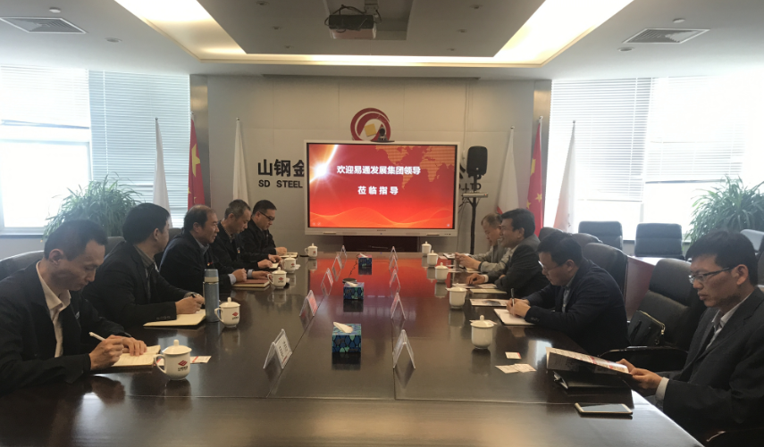 4月29日下午,山東易通發展集團有限公司(以下簡稱易通發展集團)黨委書記、董事長、總經理李中山一行到山鋼金融控股(深圳)有限公司(以下簡稱山鋼金控)交流洽談。山鋼金控黨委書記、董事長萬憲剛熱情接待,副總經理潘剛陪同。