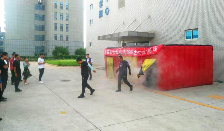 此次演練利用 “逃生帳篷”真實地模擬了火災(zāi)現(xiàn)場環(huán)境,“逃生帳篷”內(nèi)設(shè)有隔斷墻,分隔成迂回曲折的走道空間,僅設(shè)1個進口和1個出口,進出口均有遮光門簾,演練過程中帳篷內(nèi)會釋放安全煙霧,真實模擬火災(zāi)現(xiàn)場濃煙滾滾、伸手不見五指的環(huán)境。參加演練的員工3人一組,在教官的指揮下,用濕毛巾捂住口鼻,迎著濃煙進入“逃生帳篷”,隨后扶著墻壁,利用大約20秒的時間通過煙霧繚繞的漆黑走道,順利從出口“逃生”。