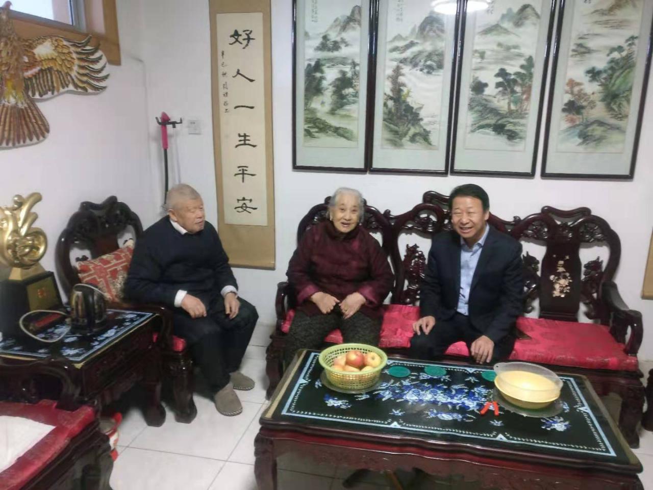 銀座集團黨委書記、董事長侯功??赐诵轮袊闪?0周年勛章獲得者和老黨員。每到一處,侯功海都與老同志促膝交談,詳細詢問他們的身體狀況和退休后的生活,并送上新春祝福。同時,侯功海介紹了公司的發展成績,歡迎他們?;毓究纯?,并祝福老人健康長壽、闔家幸福。