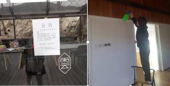 為全力配合疫情防控,泰安九女峰鄉村旅游度假區項目民宿、書吧等自26日起,全面暫停對外開放,項目值守人員嚴格按照衛生標準,定時對各部位消毒。同時,儲備好消毒用品、防護用品及感冒類藥品,加強業務培訓和技能提升,為恢復生產經營工作打基礎、做準備。