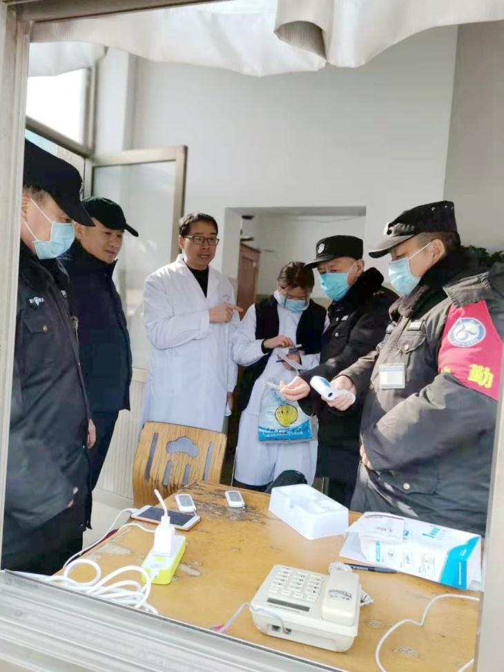學(xué)校實(shí)行封閉管理后,為守好校內(nèi)第一道入口,兩位同志在學(xué)校正門聯(lián)合安全保衛(wèi)處進(jìn)行測(cè)溫。在他們的感召下,后勤基建處黨支部所有黨員自發(fā)行動(dòng),輪班上崗,筑牢校內(nèi)第一道防線。