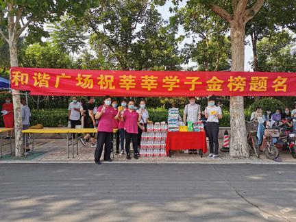 濟南和諧廣場在濟南第九中學考點門口設立“暖心服務臺”,為考生及陪考的家長們發(fā)放免費礦泉水、消毒濕巾,同時發(fā)放200張定制的暑期學生專屬優(yōu)惠卡,為考生們加油打氣,員工們遞出去的每一瓶水,都飽含著大家滿滿的祝福與期許。