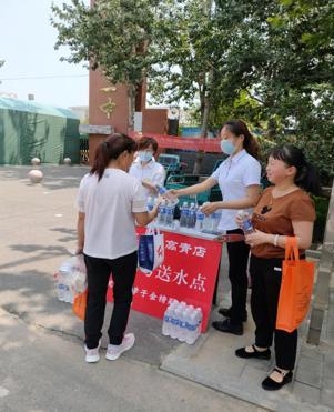 淄博高青店組織員工奔赴高青一中西門口為莘莘學子愛心送水,為考生們鼓勁加油,為在烈日下焦灼等待的家長送一份清涼!