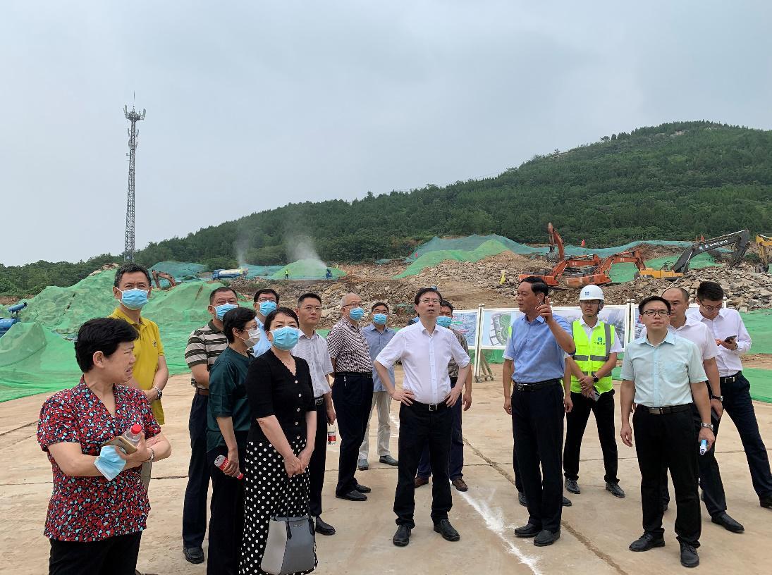 蘇國海一行深入施工現場,實地察看項目的進展,詳細了解安全文明施工,院區規劃,原爛尾樓改擴建及各單體建筑的規劃、設計、方位、建設等情況。