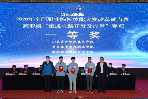 11月28日至30日,2020年全國職業院校技能大賽改革試點賽“集成電路開發及應用”賽項(高職組)比賽在山東商院舉辦,來自全國28個職業院校的84名選手參加了本次比賽。經過兩天的角逐,山東商院、重慶城市管理職業學院、深圳信息職業技術學院獲得一等獎。