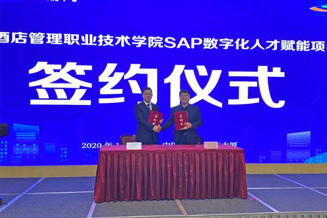 12月4日,“升級數字思維,打造智慧企業”論壇在濟南舉行。青島酒店學院工商管理學院副院長潘華南參加論壇,就數字商業職業化人才培養模式與參會專家進行了交流,并與SAP(北方)創新賦能中心董事長王濤共同簽署校企共育數字化商業人才合作協議。