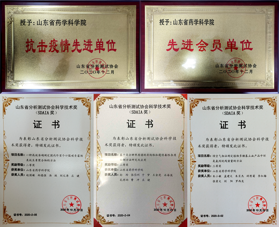本次會議對2020年優秀會員單位、抗擊疫情先進單位及獲得山東省分析測試協會科學技術獎的單位及科技工作者進行了表彰。省藥科院榮獲“先進會員單位”和“抗擊疫情先進單位”,由孫玲等完成的《基于高分辨率質譜的異構體和遺傳毒性雜質檢測方法研究及應用》、趙國敏等完成的《一種高效準確測定國內外首個口服碳青霉烯類抗生素聚合物的方法》榮獲山東省分析測試協會科學技術獎(SDAIA獎)二等獎,由朱小敏等完成的《頂空氣相法測定多糖基止血產品中環氧氯丙烷殘留量的方法》榮獲三等獎。
