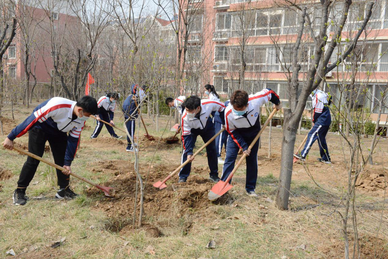活動中,廣大師生熱情高漲,揮動鐵鍬、整隴培土、扶正樹苗、澆水定根,現(xiàn)場一派熱火朝天、干勁十足的勞動景象。經(jīng)過大家的共同努力,一棵棵充滿生機和希望的樹木昂首挺立,煞是好看。