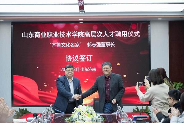 現(xiàn)場簽約后,徐紅為“齊魯文化名家”郭志強(qiáng)頒發(fā)國家級(jí)高水平專業(yè)群“市場營銷專業(yè)群”建設(shè)顧問聘書,張宗國為山東商院客座教授頒發(fā)聘書。