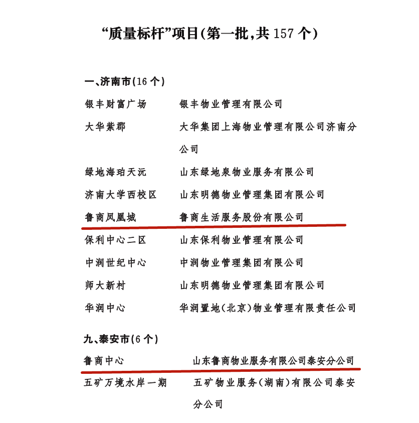 4月19日,山東省住房和城鄉(xiāng)建設(shè)廳(以下簡(jiǎn)稱省住建廳)發(fā)布有關(guān)通知,公布品牌建設(shè)典型示范案例和“質(zhì)量標(biāo)桿”項(xiàng)目(第一批),魯商服務(wù)在管的魯商鳳凰城和泰安魯商中心兩項(xiàng)目被評(píng)為“質(zhì)量標(biāo)桿”項(xiàng)目。