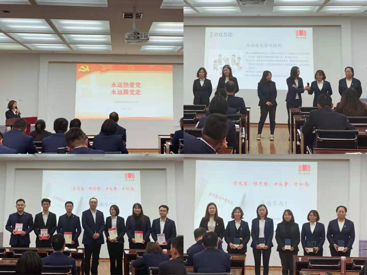 4月23日,在第26個“世界讀書日”和“闖心讀書會”成立1周年之際,為深化“牢記初心 保持赤心 堅定信心”黨史學習讀書競賽活動,營造良好黨史學習教育氛圍,投資公司舉辦了“知黨史·學黨史·講黨史”讀書分享活動。