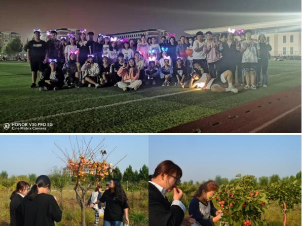 9月30日晚,伴隨著“熱力廣場舞”音樂響起,活動拉開序幕。歡快的音樂、輕松的氛圍吸引留校學生陸續(xù)加入到廣場舞隊伍,他們以飽滿的熱情、動感的舞姿展現(xiàn)著當代大學生的青春活力;“熒光夜跑”活動點燃了同學們的參與熱情,夜幕中,矯健的身影穿梭在田徑賽道上,涌動的人海形成一道道亮麗的風景線,把整個校園點綴成閃爍的歡樂海洋。掛滿枝頭的海棠、山楂、桃子進入采摘期,10月1日,同學們在老師帶領下采摘果實,品嘗豐收的喜悅;“抱團打天下”游戲,大家齊心協(xié)力、相互鼓勵、認真參與,現(xiàn)場氛圍歡樂愉快。