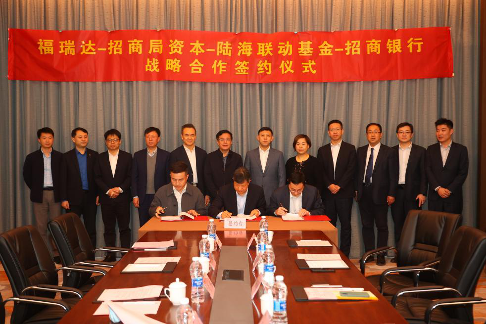 會上,福瑞達黨委書記、董事長賈慶文,招商銀行濟南分行行長辛亮,招商局資本黨總支書記、副總經理楊百千,山東港口金融控股有限公司(以下簡稱山東港口金控)副總經理、陸海聯動基金董事長楊倩代表各方簽署合作協議。