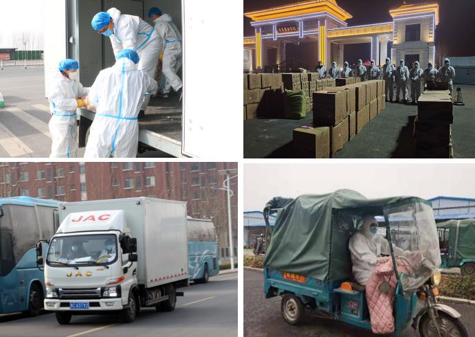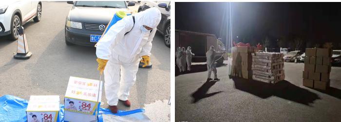 學(xué)院專人對供應(yīng)物資外包裝進(jìn)行集中消殺,后勤人員和教職工志愿者規(guī)范穿戴防護(hù)服迅速到達(dá)現(xiàn)場,有序裝車,運(yùn)進(jìn)校園。由于校內(nèi)沒有大型運(yùn)輸工具,只能用小型貨車、三輪車、小拖車,組成臨時(shí)“運(yùn)輸小分隊(duì)”,各類車輛往返校門口與食堂400多次,運(yùn)輸小分隊(duì)每人每天平均工作13.5小時(shí),用雙腳打通食材供應(yīng)的“最后一公里”。