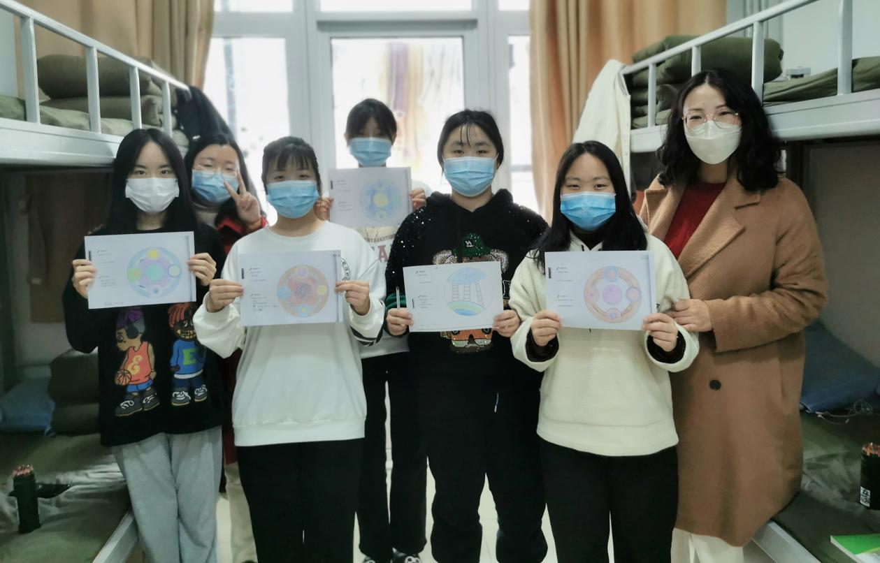 老師帶著學生們一起做放松訓練,感受近一周以來的心情,學生們用彩鉛創作自己心目中的曼陀羅作品。