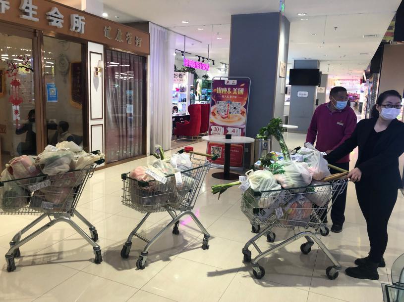 為提高購物的便利性,門店多方組織貨源,精心搭配蔬菜、水果套餐,通過“銀座到家”小程序等線上平臺,以社區(qū)群“群內(nèi)接龍、線上下單、線下配送”的形式全力保障居民日常生活所需。為確保配送的及時性,在黨員先鋒帶領(lǐng)下,門店組建線上揀貨、蔬菜包裝、線下配送等多支突擊隊,職責(zé)分明、通力協(xié)作,全面有序做好保供工作。