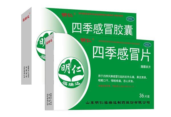 明仁福瑞達四季感冒片/膠囊,清熱解表,用于四季風寒感冒(夏季空調受涼、淋雨刺激、冬季寒冷、四季季節交替時的溫差過大受涼等因素所致)引起的發熱頭痛、鼻流清涕、咳嗽口干、咽喉疼痛、惡心厭食。該方源于古方“加味香蘇散”,藥性平和,雖辛溫而不燥,雖發散而不烈,無過汗傷津之弊,對體質較弱者尤為適宜。