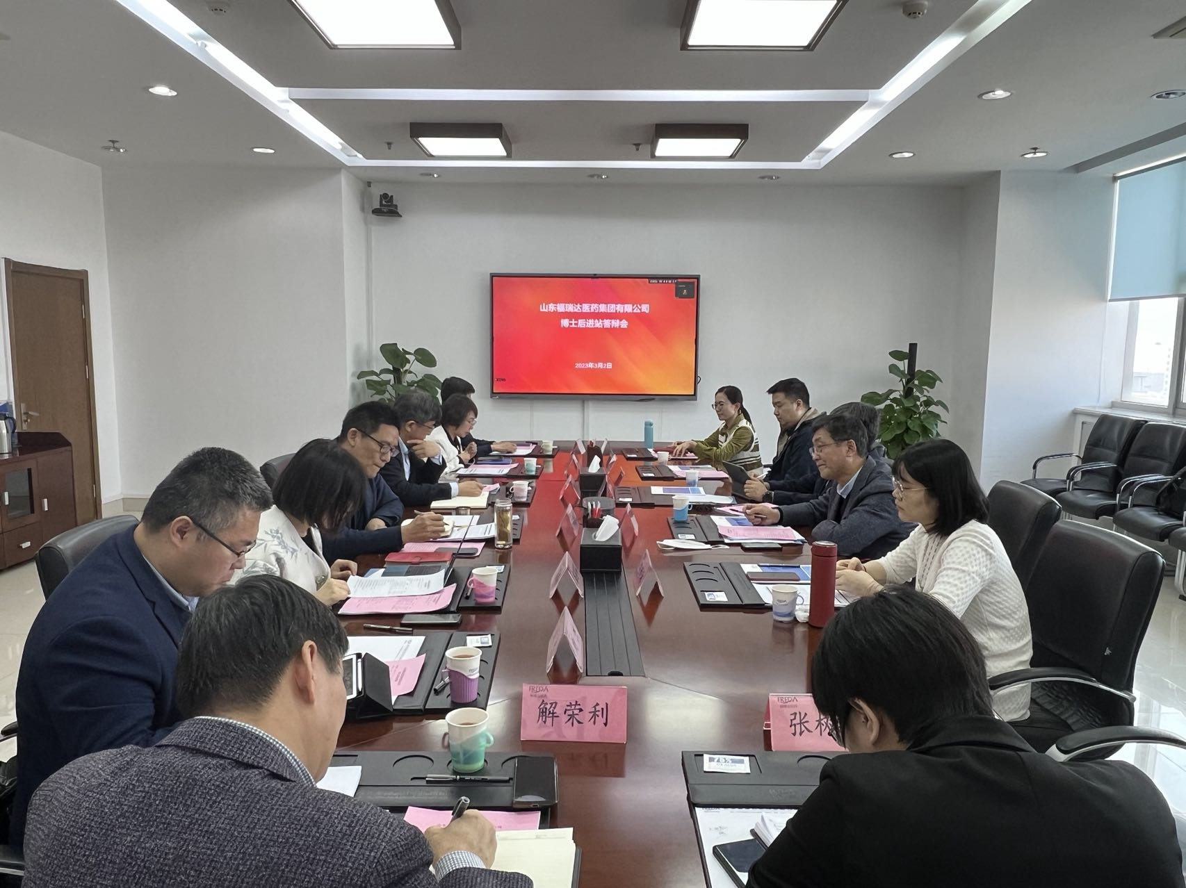 3月2日,福瑞達舉行博士后科研工作站首批博士后進站申請答辯會。山東大學合作導師婁紅祥、劉新泳、劉倩,福瑞達合作導師、主任藥師賈慶文、正高級工程師楊素珍共同參會指導,就擬開展的課題方案設計進行討論。