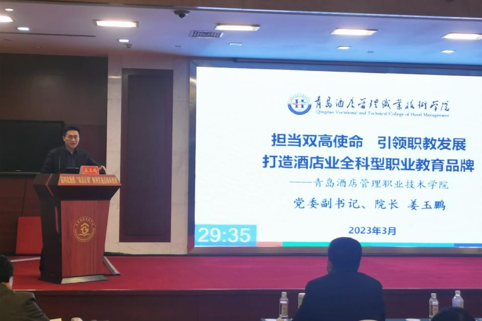 3月20日至24日,助推“雙高計劃”順利實施(2023)高級研修班(第六期)舉辦。青島酒店學院院長姜玉鵬在會上作題為《擔當雙高使命 引領職教發(fā)展 打造酒店業(yè)全科型職業(yè)教育品牌》的典型經(jīng)驗分享。