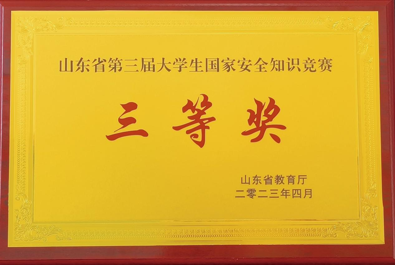 4月15日,由省教育廳主辦的山東省第三屆大學生國家安全知識競賽落下帷幕,青島酒店學院學生代表隊榮獲團體三等獎。