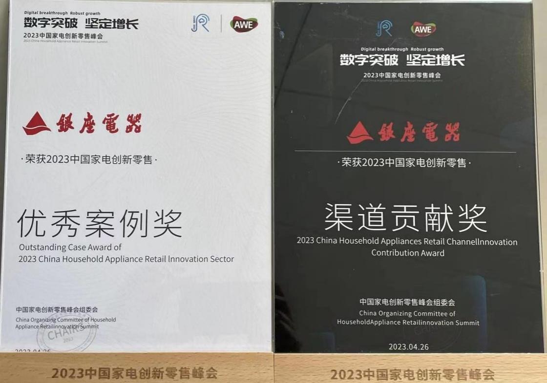 近日,銀座電器受邀參加由中國家用電器協會指導、中國家電網主辦、Gfk中國特約聯合主辦的“數字突破·堅定增長——2023中國家電創新零售峰會”,并榮獲2023中國家電創新零售·優秀案例獎、渠道貢獻獎。