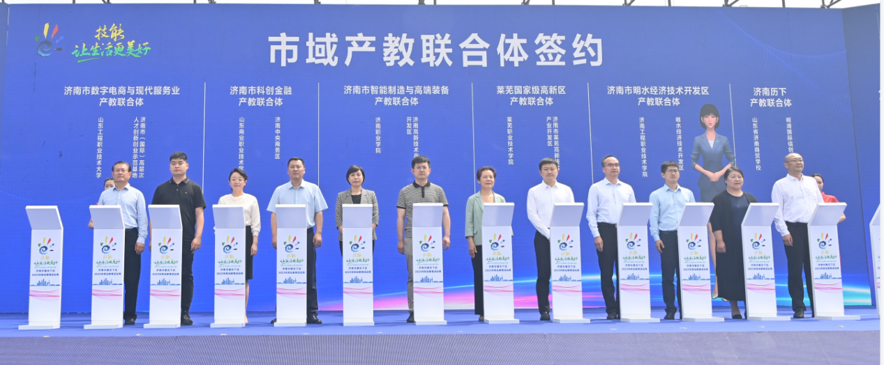 5月18日,在濟南市暨歷下區2023年職業教育活動周啟動會上,山東商院黨委副書記、院長王鑫代表學校與濟南中央商務區簽約成立濟南市“科創金融”產教融合聯合體。
