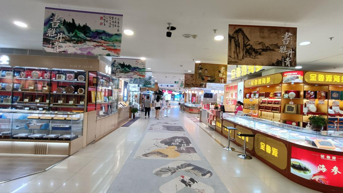 本次展出作品高清復刻傳世名畫《千里江山圖》和齊白石、吳冠中等近現代大師的經典名作,吸引顧客駐足欣賞。門店充分利用各種功能區為消費者構筑沉浸式社交消費空間,讓大家近距離感受名畫魅力,真正做到“好買也好逛”。展期將持續至9月中旬,后續將在銀座濟南玉函店等門店巡展。