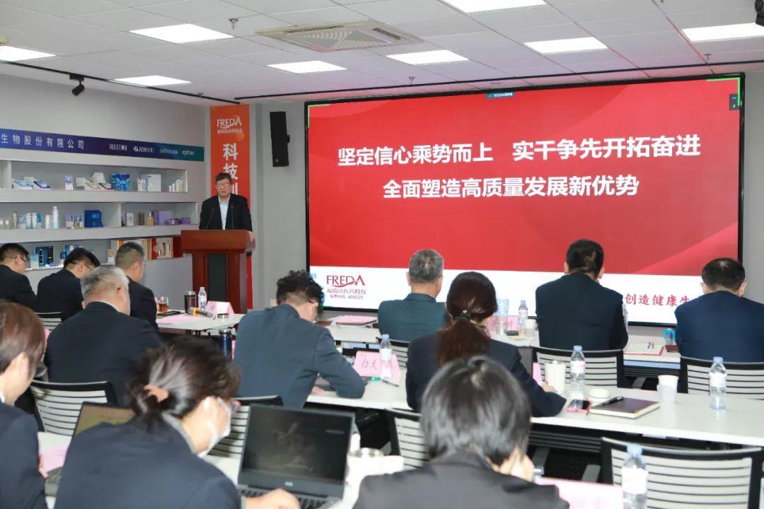 賈慶文作題為《堅定信心乘勢而上 實干爭先開拓奮進 全面塑造高質量發展新優勢》的講話。他指出,2024年福瑞達將認真貫徹魯商集團“12345”高質量發展戰略,強化“五個堅持”,落實“五個聚焦、五個確?!?,以科技創新力、產業生態力、管理運營力、品牌影響力、組織文化力,持續壯大規模實力。一是強化科技創新力,培育新質生產力。加大研發投入,推進研發一體化規劃,發揮學術專家委員會作用,堅持以市場為導向,以科技創新推動產業創新。二是做大做強核心主業,打造產業生態力。優化協同機制,著力推進四個“一體化”。醫藥板塊加快品牌中藥、中藥大品種培育?;瘖y品板塊聚焦資源,持續推進大單品策略。原料板塊向綠色生產、高品質制備和衍生產品轉型。三是專業驅動、數智升級、強化管控,增強管理運營力。加強品質管理,提升智能制造水平,落實降本增效,加強風險防控,做好安全管理。四是發揮行業領軍作用,塑造品牌影響力。培養全球視野,積極開展國際業務。在行業論壇發聲,全面啟動ESG品牌傳播,以科學與文化營銷展現科技自信、“國潮”魅力。五是黨建引領、深化改革,提升組織文化力。將黨建融入生產經營,用黨建保障工作落實。扎實開展新一輪國企改革深化提升行動,提升組織效能。