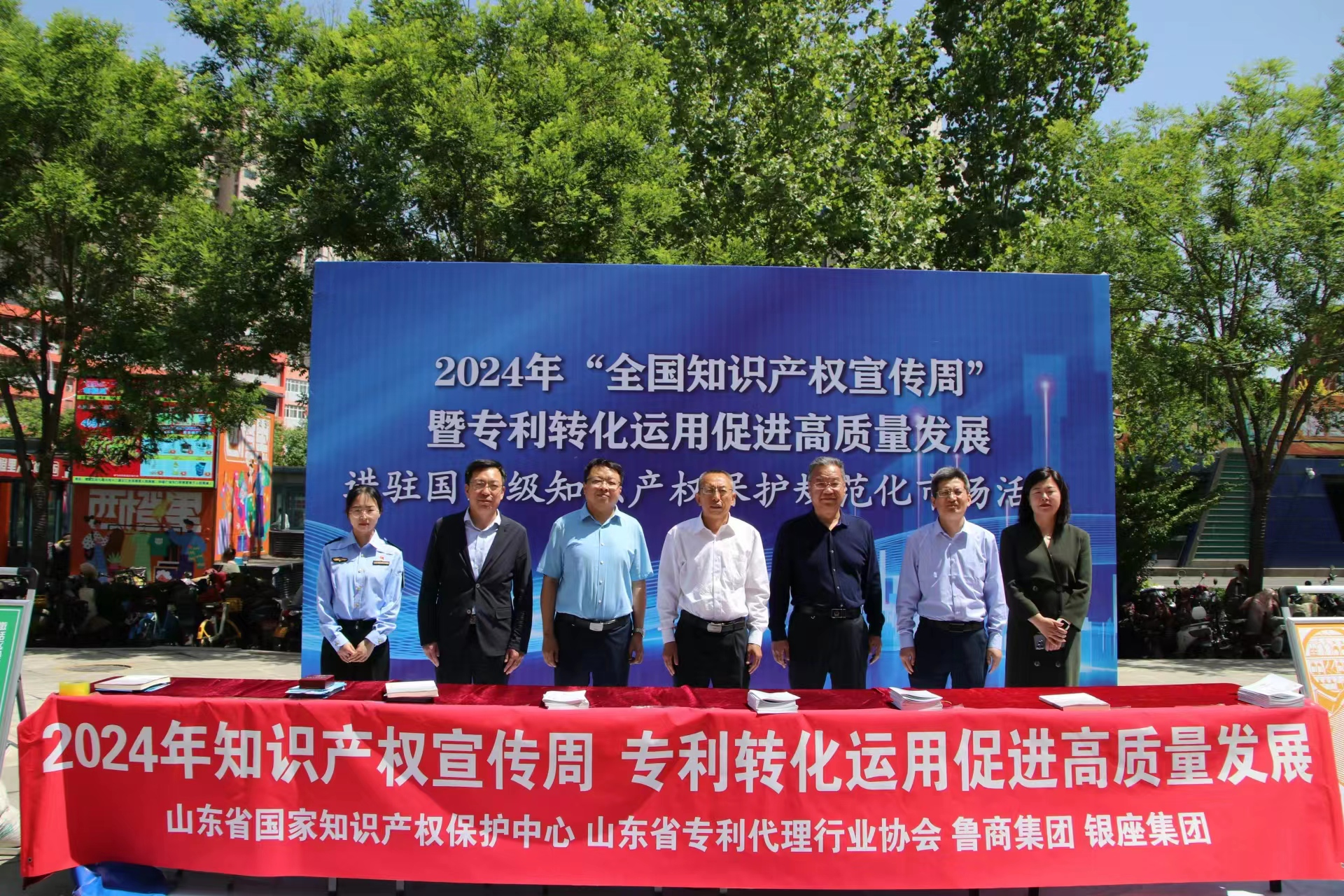 在第24個世界知識產權日來臨之際,魯商集團、銀座集團聯合山東省國家知識產權保護中心、濟南市槐蔭區市場監督管理局、山東省專利代理行業協會,在濟南和諧廣場共同舉辦2024年“全國知識產權宣傳周”暨專利轉化運用促進高質量發展進駐國家級知識產權保護規范化市場宣傳咨詢活動。