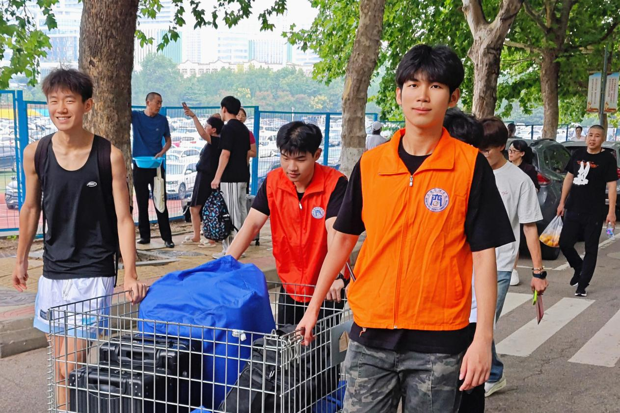 “同學你好,請往這邊走?!庇卢F場,身著彩色馬甲的志愿者們的身影活躍在每個需要的角落。接站引領、答疑解惑、搬運行李……志愿者們熱情的態度、細致的服務打通了迎接新生報到的“第一公里”和“最后一公里”,用青春微笑展現校園正能量。