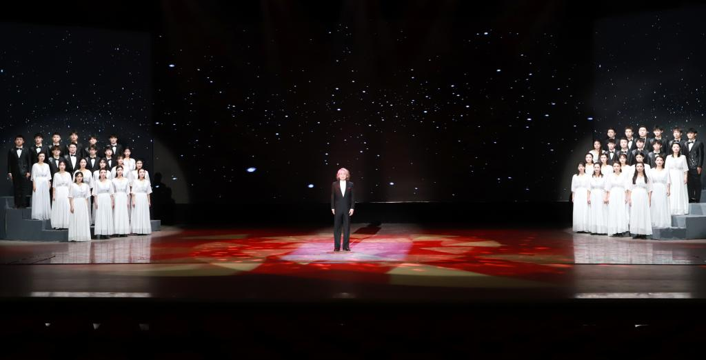 正式演出中,徐濤領誦,學校42名師生合誦,同臺演繹了《焦裕祿之歌》。徐濤沉穩大氣的臺風、富有感染力的嗓音、由內而生的真摯情感直擊人心,現場演出效果震撼,藝術感染力極強,呈現了一場精美絕倫的視聽盛宴。