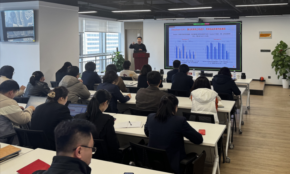 為加速智能化技術(shù)在業(yè)務(wù)場(chǎng)景中的效能提升價(jià)值釋放,魯商產(chǎn)融還組織開展了面向公司全員的“人工智能大模型應(yīng)用”專題培訓(xùn),特邀行業(yè)專家從大模型技術(shù)發(fā)展趨勢(shì)、DeepSeek技術(shù)解讀、AI應(yīng)用探索實(shí)踐及典型案例、細(xì)分領(lǐng)域AI訓(xùn)練、實(shí)操演示五個(gè)方面進(jìn)行了全方位講解展示,幫助員工更好地理解使用大模型技術(shù),進(jìn)一步開拓視野、拓寬思路、提升本領(lǐng)。